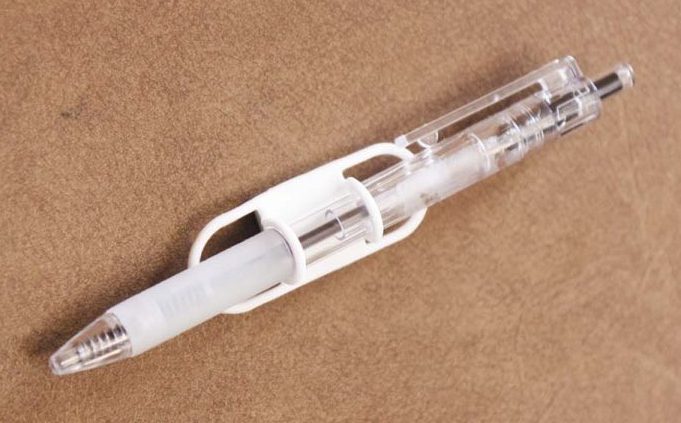 ボール径0.5mmの黒インクボールペンとセラミックカッターが一体化。荷物の受領印サインと開梱がこの1本で完了する。セラミックカッターは、耐水性があり錆びにくく、刃が小さいため箱の中身を傷つけにくい。