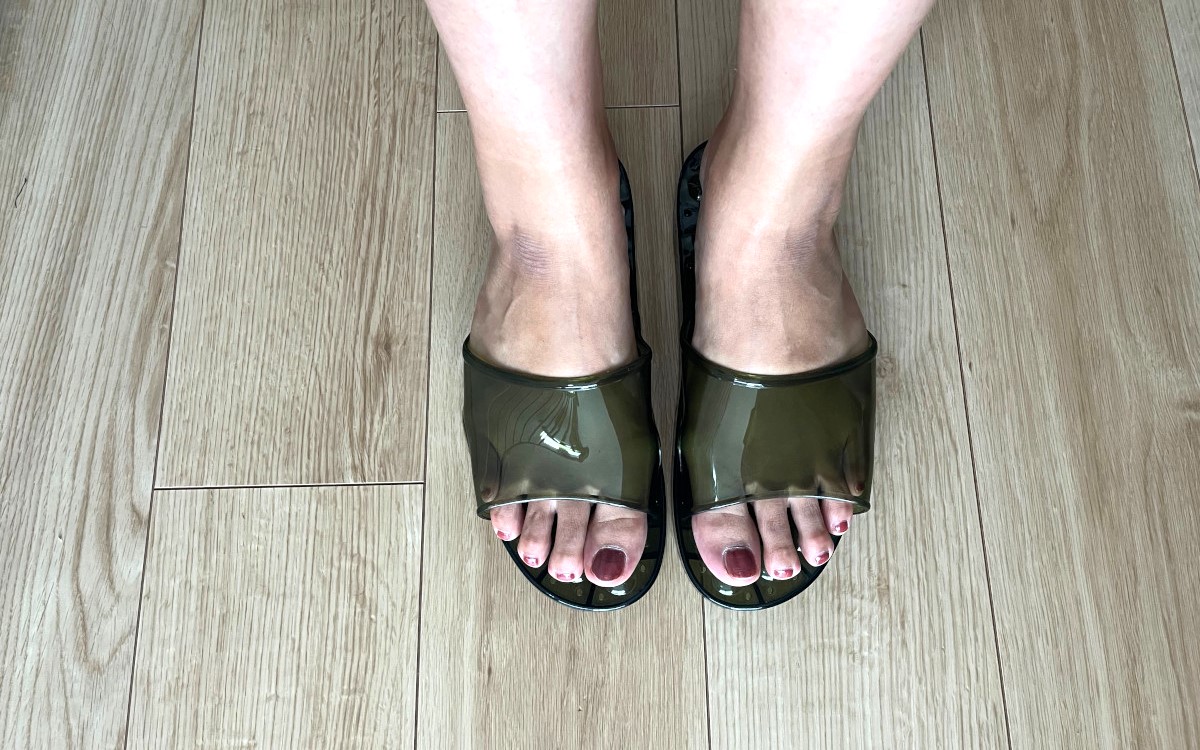 幅約9.5cm、縦約26cmで、足の適応サイズは約22.5~25cm。女性が使いやすいサンダルサイズですね。色はオリーブとグレーの2色展開で、クリア素材なのでちょっとしたお買い物にも使える優れもの。こちらの商品は2足セットで届くので、1足使えなくなっても予備が手元にあるのは嬉しいです。