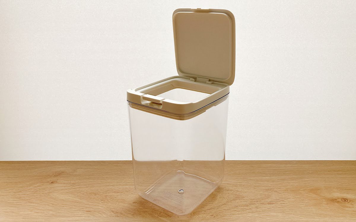 実際にふたを開けてみると、密閉性を重視した作りになっているため少々指の力がいりますがワンタッチで簡単にふたが開きました。これなら片手しか使えない時でも助かります。また取り出し口が広いので、中に入っている食品を取り出しやすいのもGOOD。