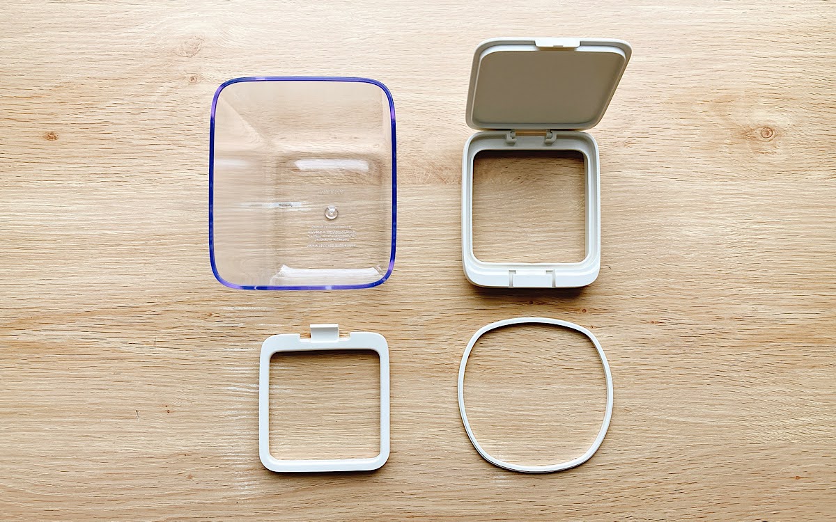 同商品はふたのタイプも2種類用意されており、ホワイトとクリアから選ぶことが可能です。今回チョイスしたのはホワイトタイプで、中身を隠したい人にはこちらがオススメ。上から見た時に中身が見えないので、スッキリ整った印象を与えてくれます。