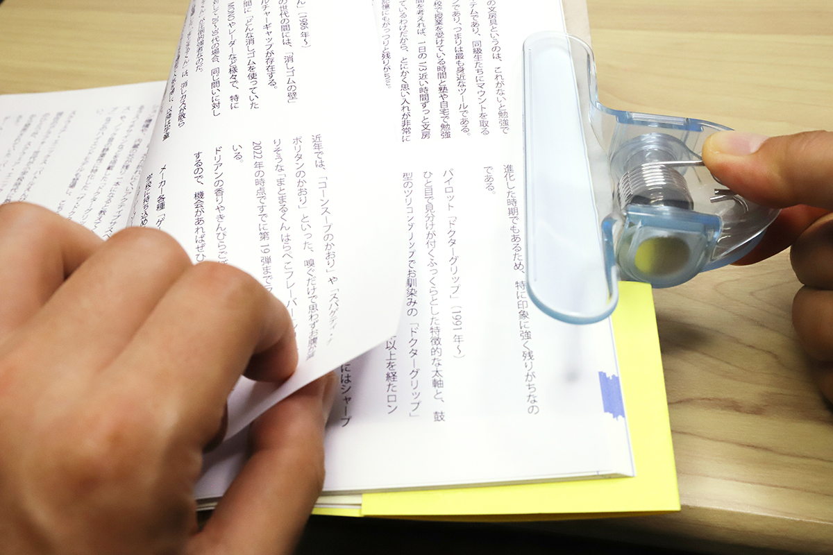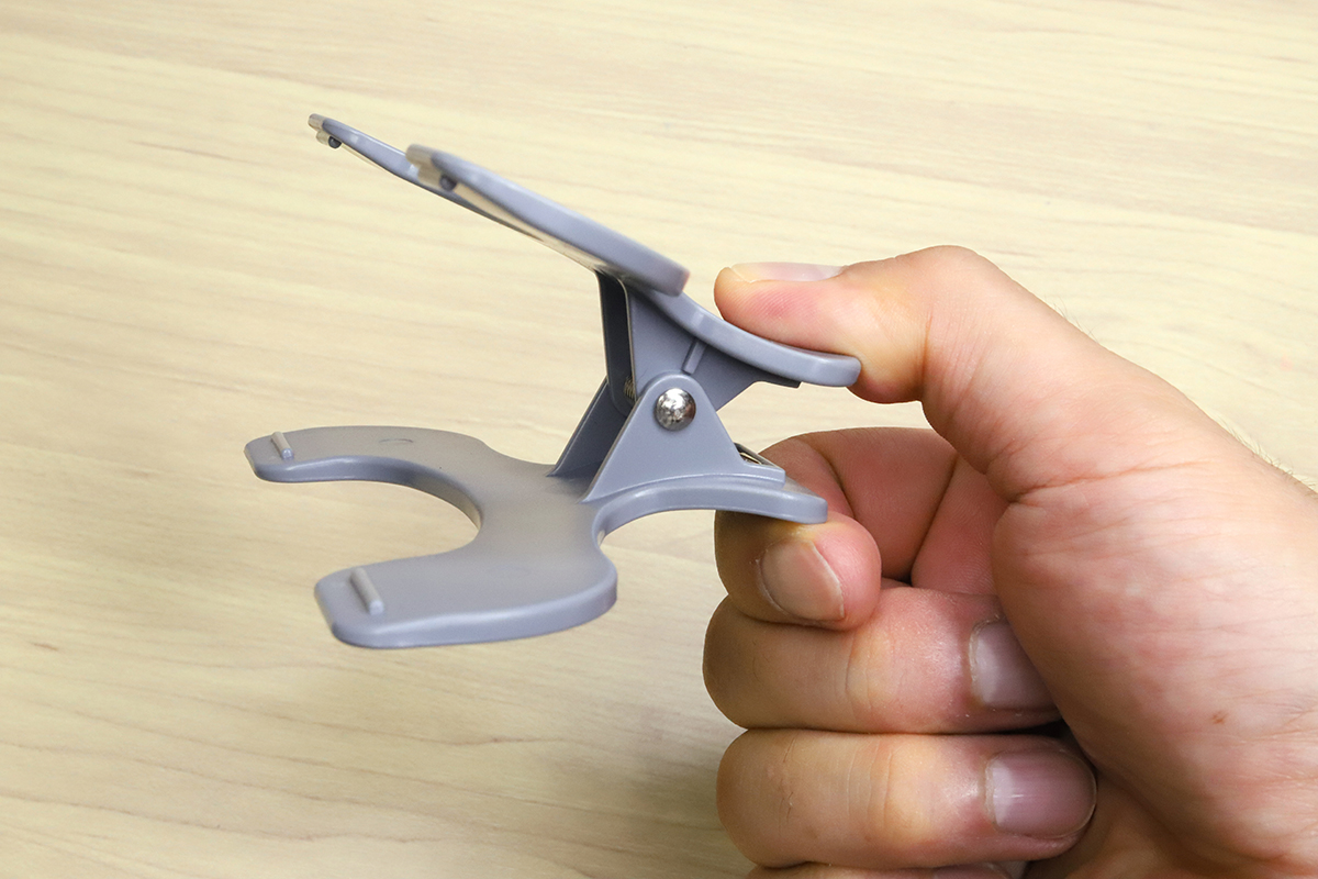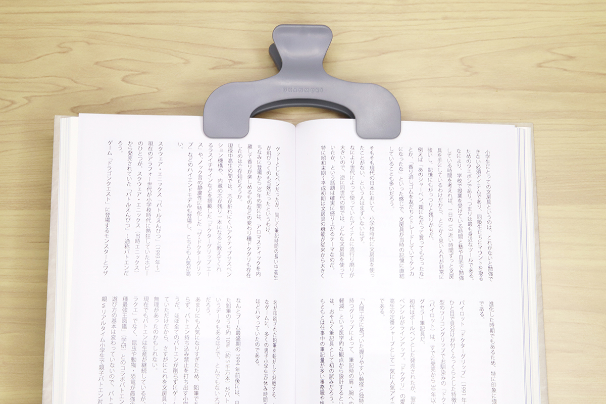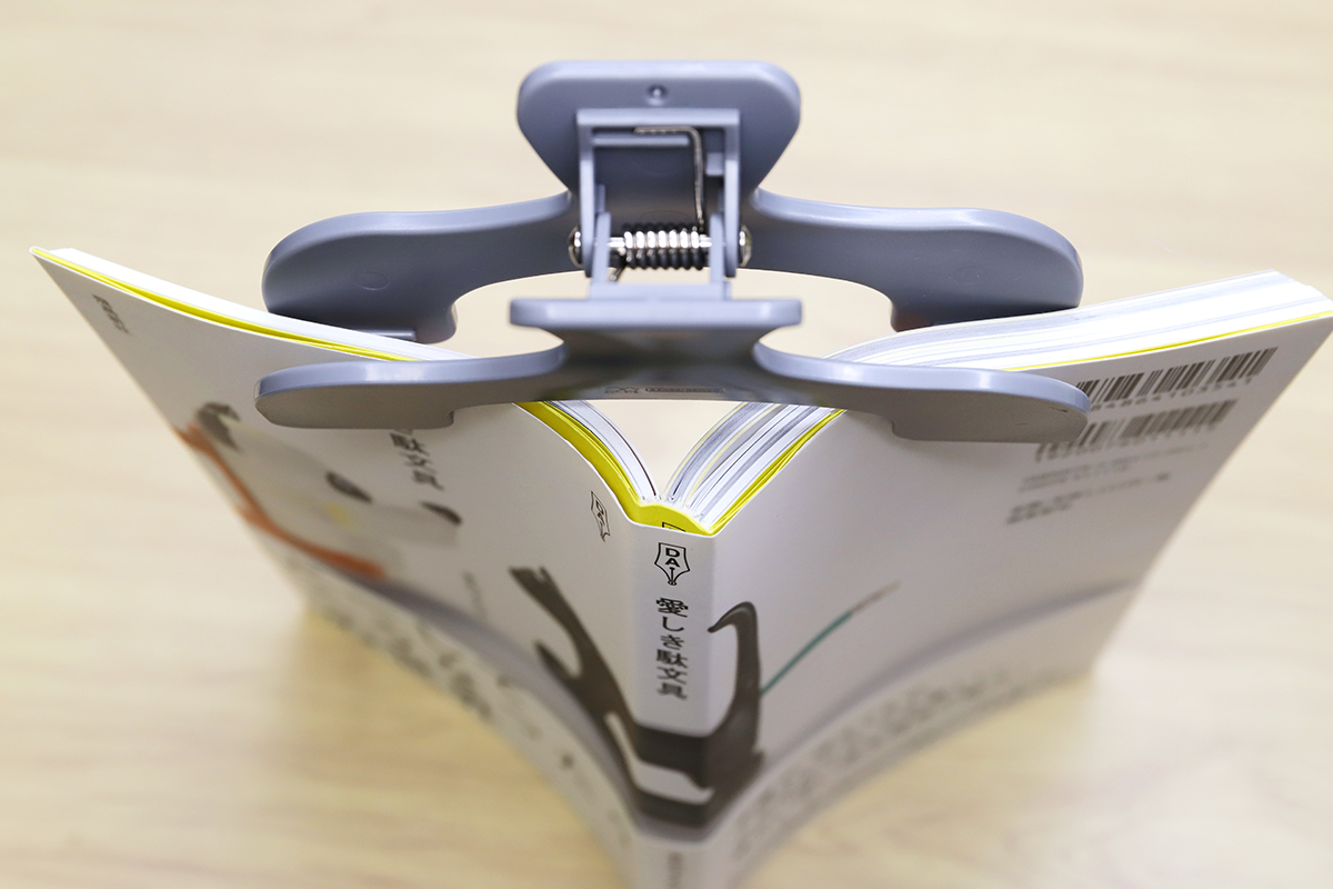 以前よりはだいぶ減ったとはいえ、本など紙の資料を見ながら仕事を進めるという機会は、いまだにゼロではないだろう。そういうときに、なによりも面倒くさいのがページの固定である。本やカタログを開いた状態でギュッと圧をかけて押さえ付けたり、重しを乗せてみたりしても、いつの間にかページが戻っていたりする。しかも、借り物や大事な本だったりすると手荒な真似もしづらい。