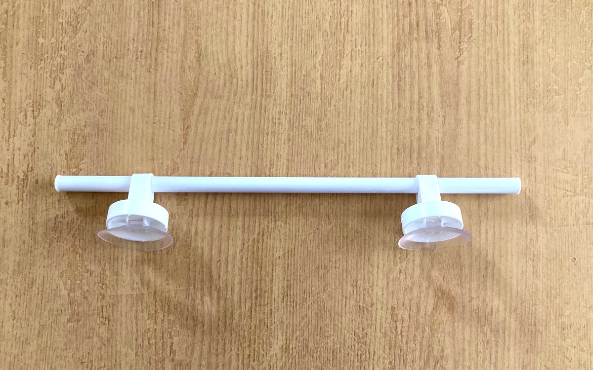 ●ヘアアイロンやサンダルも掛けられる「タオル掛け(40cm、吸盤)」(ダイソー)