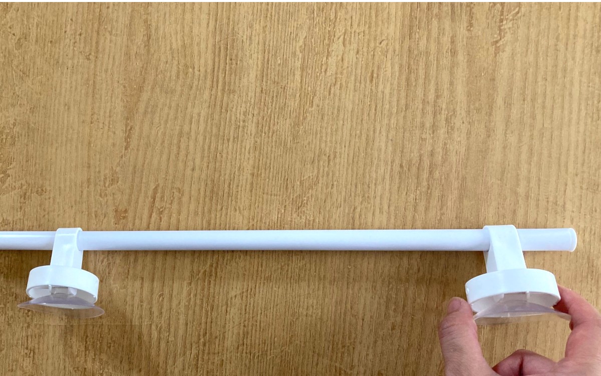 吸盤が付いている部品は可動式でお好みの幅に変えられますし、動かすときも力は全く要りません。吸盤の直径は6cmほどあり、わりと大きめ。壁にしっかり吸着してくれます。吸盤をつける壁面などは事前に油分などを拭き取りキレイにしておいてくださいね。