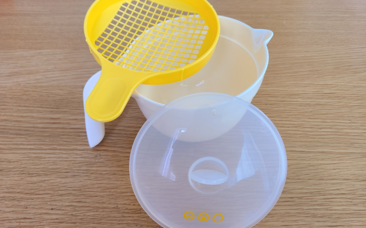電子レンジ対応の計量カップや注ぎ口のついた小さめのボールを探している方は、ぜひ試してみてください。