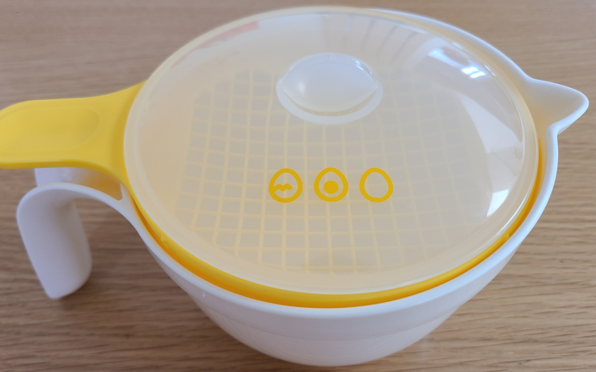 パッケージに「たまごしらえボール」という名前がついている通り、ゆでたまごをみじん切りにしたり、溶きたまごを電子レンジで加熱してスクランブルエッグが作れたりと、たまご料理に大活躍してくれるのがベルメゾンの「持ち手・注ぎ口・計量メモリ付きミキシングボウル【電子レンジ対応】」(1078円/税込)。「混ぜる、計る、注ぐ、みじん切り、水切り、温める」の6つの使い方ができます。