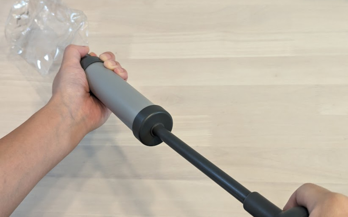 もう片方の手で丸い部分を握り、引っ張ったり押し込んだりします。丸いハンドルを引くたびに、ペットボトルの中の空気が吸引されベコベコっと音を立てて凹みました。ペットボトルの中の空気が少なくなりペチャンコになると、ハンドルを引っ張っても固くてスライドできなくなります。