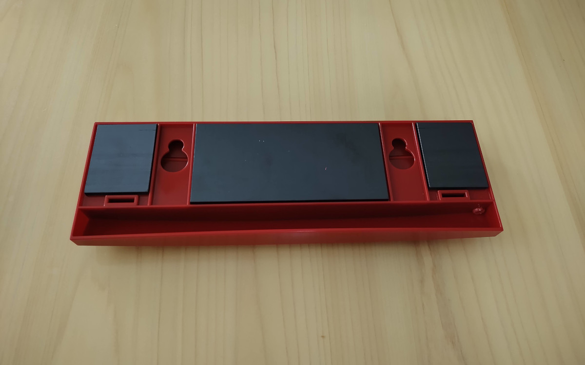 重さは約300gと意外と重量があります。この重さを支えられるのか心配して裏を見ると、大きな磁石が付いていました。冷蔵庫に張り付けてみると、少しの力ではびくともしないくらい磁石が強力です。取り外すのに苦労するほどの張り付き具合に驚きました!