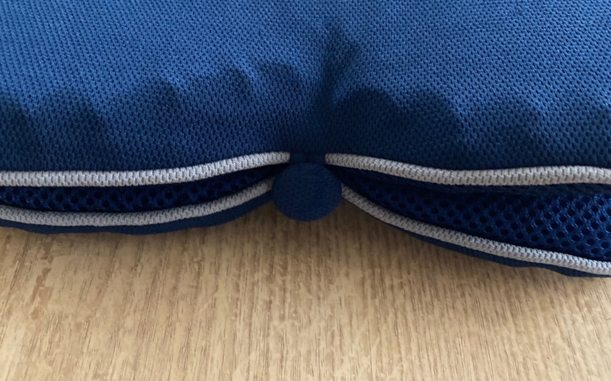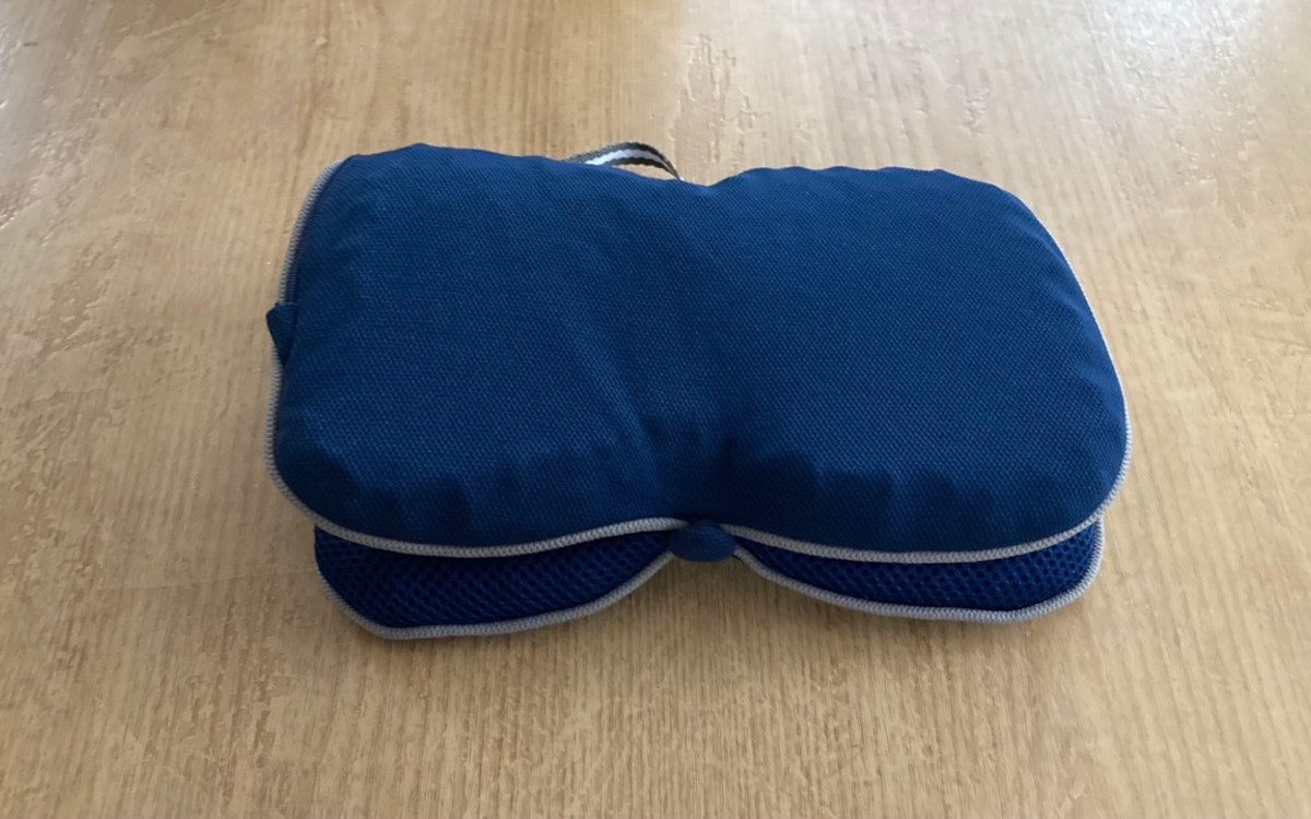 手で押し込んでみると、固すぎず柔らかすぎない絶妙な低反発感がありました。折りたたんだ状態で枕にしてもいい感じでしたよ。長距離移動する旅行時、カバンへ入れておくのもいいですし、防災時に体育館へ避難したときも重宝しそうです。