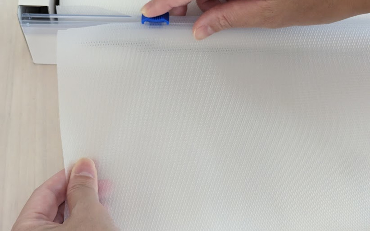 カットする時は端にあるスライダーを反対側の端までスーッと移動させるだけ。スライダーを移動させる時に引き出したシートを片方の手で固定しておくと、ズレずにキレイにカットできました。スライダーは右からでも左からでもカットが可能なので、使いやすい方からできるのもGOOD。