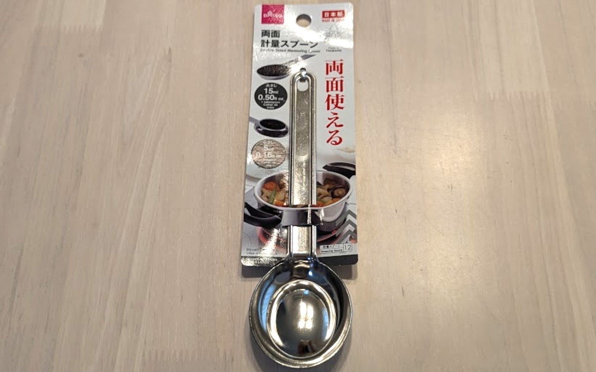 忙しい毎日の中でのご飯作りで、少しでも時短できたり作業を少なくできたりすると嬉しいものです。料理の味付けをする際には、計量スプーンが必要なことが多いですよね。“大さじで調味料を量ったら、一旦スプーンを置いて小さじに持ち替えて再び量る”という作業はよくあることですが、スプーンの置き場所に困ったり収納場所から小さじを見つけるのに手間取ったりすることがあって…。今回ご紹介するダイソーの「両面計量スプーン」(110円/税込)は、そんな少しの手間が省ける便利なアイテムでした。