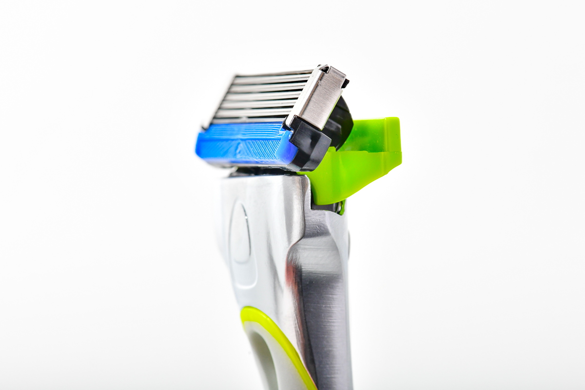 カミソリ上部のヘッド部分を倒せばコンパクトヘッドになる「フリップ式トリマー」も魅力的な機能。男性の場合、鼻の下や口の横、もみあげといった狭くて細い場所を簡単に細かく剃れます。