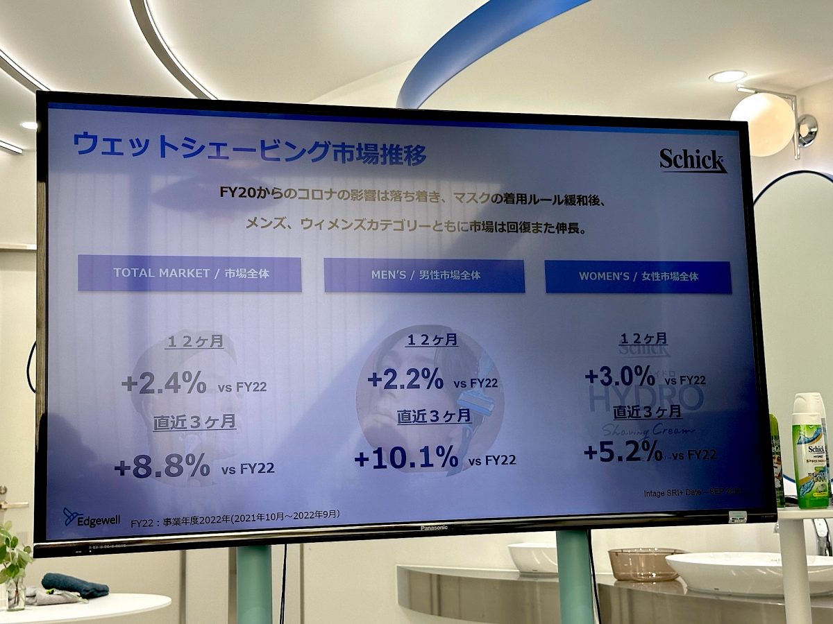 「ウェットシェービング市場全体は12か月でプラス2.4%。 直近3か月でいうと、プラス8.8%。実は今年の初め、1月や3月は本当にまだまだマイナス成長でした」(疋田さん)