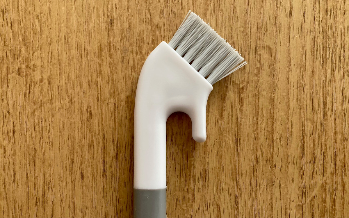上部のハケブラシにはフックが付いているため、使い終わったあとは水切りかごなどに引っ掛けておけます。洗うときもサッと取り出せて便利ですね。