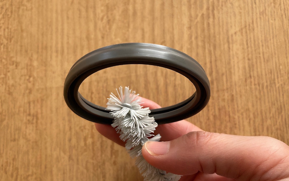 洗うとき地味にストレスだったパッキンのミゾも、ブラシ先端がしっかり奥に入り込んでくれます。ただ巻きブラシのほうは結構固めのブラシ素材。強くこすりすぎると傷がつくかもしれないので気をつけてくださいね。ちなみに塩素・酸素系洗剤も使用できません。