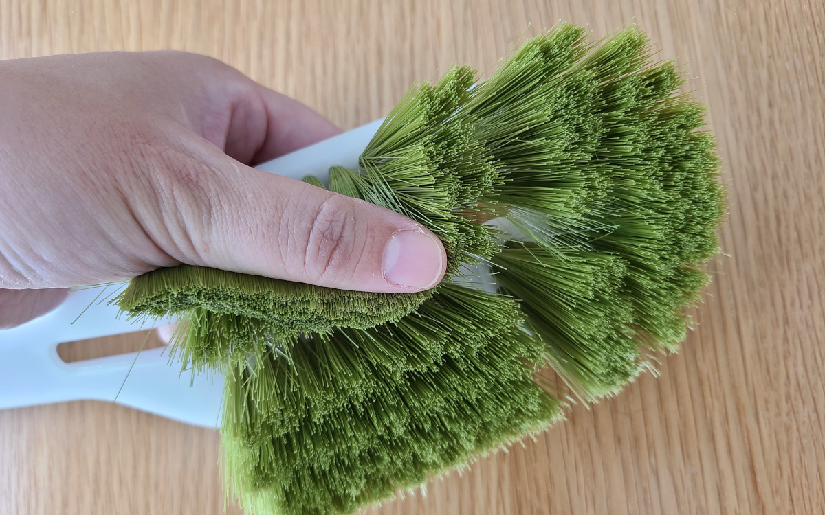 スポンジに比べると泡立ちにくいといわれるブラシの弱点を、細くて軟らかく、毛量の多いブラシで克服したこの商品。触ってみると確かにブラシが柔らかいです!