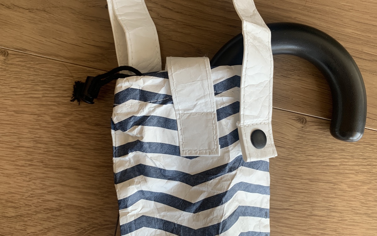 そしてなんと言っても素晴らしいのが、ボタンの留める位置を変えることでバッグの長さを変えられること。対応サイズは長傘75cm以下、折り畳み傘28cm以下。長傘はもちろん、子供用の小さめ傘や折り畳み傘にも使用することができました。