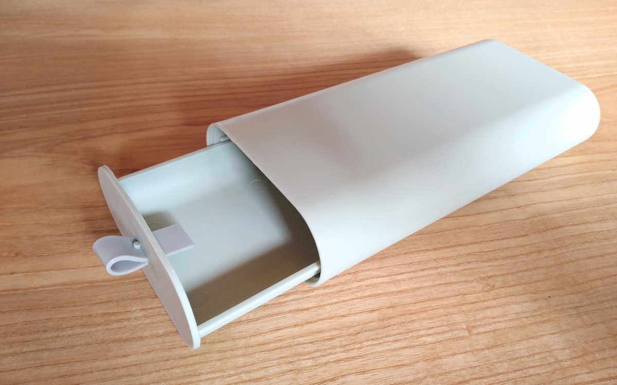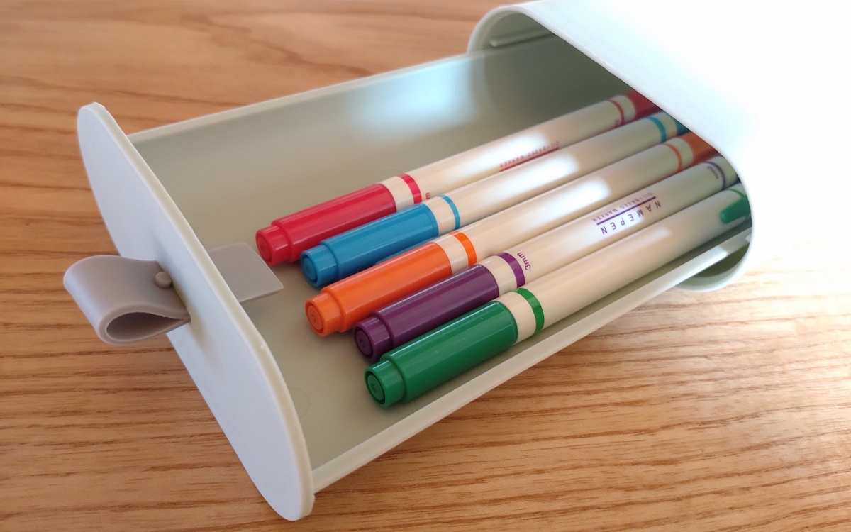 サイズは幅約10×高さ4×奥行き19cmで、ペンがすんなり入る大きさです。一見小さいかな? と思いましたが、卓上に置くならこれくらいの大きさがちょうどいいのかも。ペンだけじゃなく、クリップや付箋といった文房具やちょっとしたコスメも入ります。