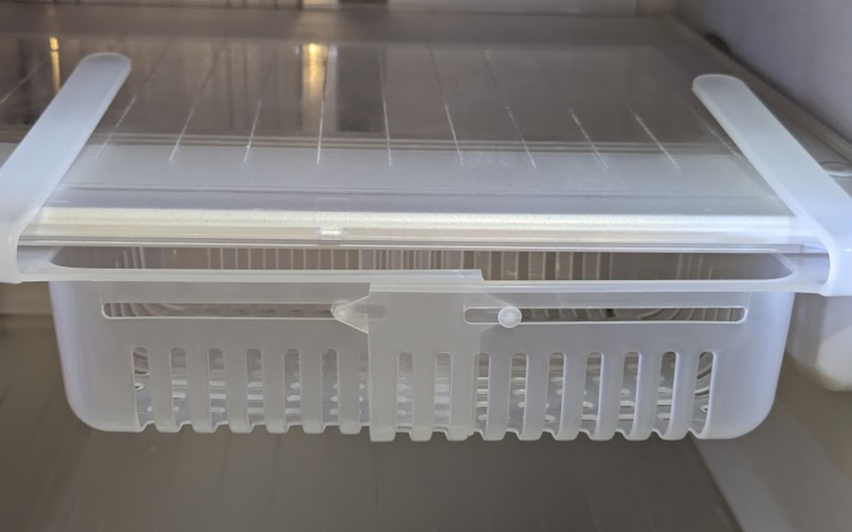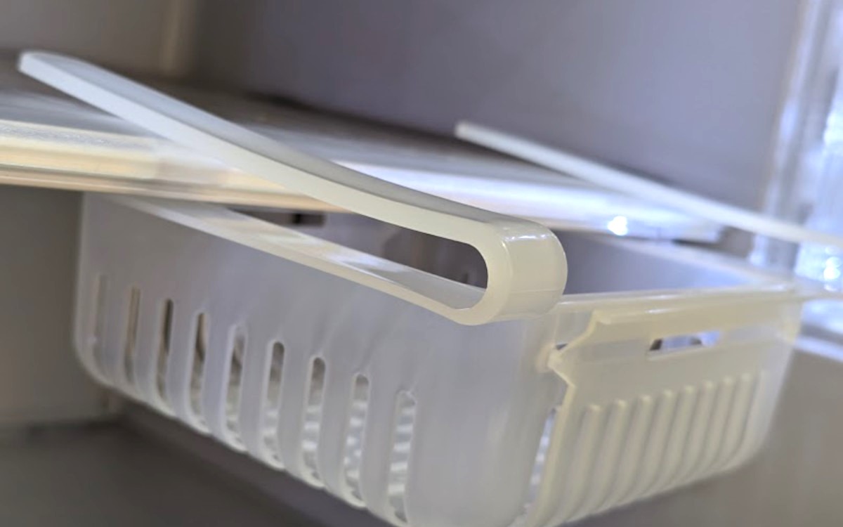両側の持ち手のような部分を、冷蔵庫の棚板に挟んで取り付けることができます。冷蔵庫のもったいないスペースに引き出しが1つ増えました。約1cmまでの棚板に取り付け可能なので、冷蔵庫だけでなくさまざまな場所でも活躍できそう。