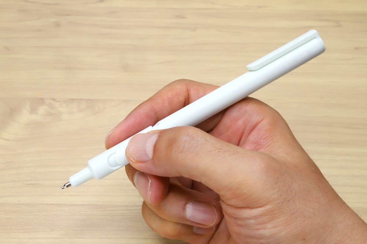 ノックする際に軸を持ち替える手間はほとんどないため、効率の点ではかなり良さそう。筆記体勢のまま1ノックして、また筆記に戻るまでの所要時間は確実に1秒以下。かなりスピーディーにノックできるし、すぐさま筆記に戻りやすい。