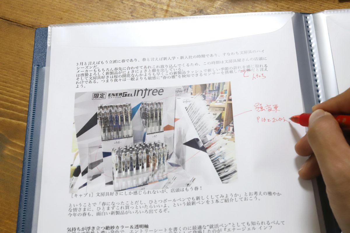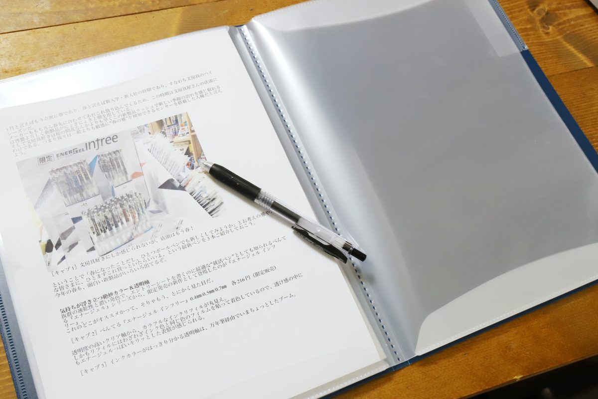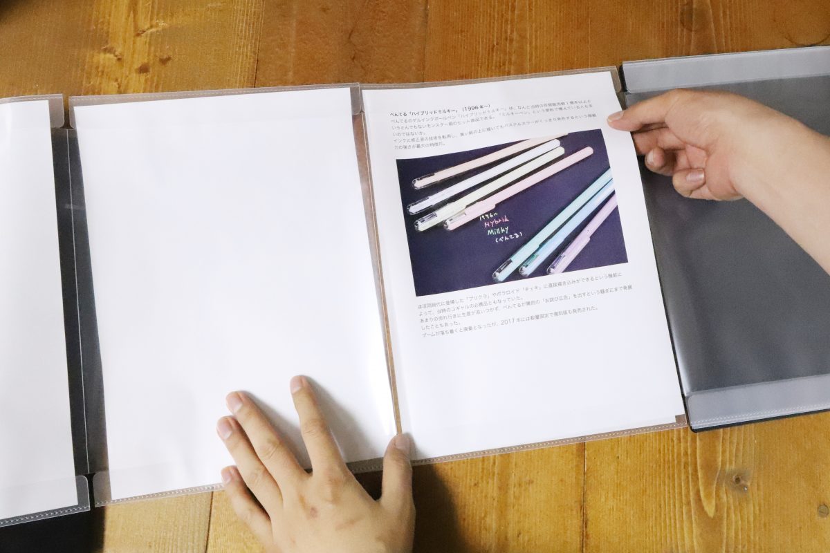 もちろん、一般的なクリアファイルと同様に、ページをめくって閲覧することも可能なので検索性も高い。今までの製品のメリットはそのままに、書類を取り出すことなく書き込みできるという利便性がプラスされているのである。
