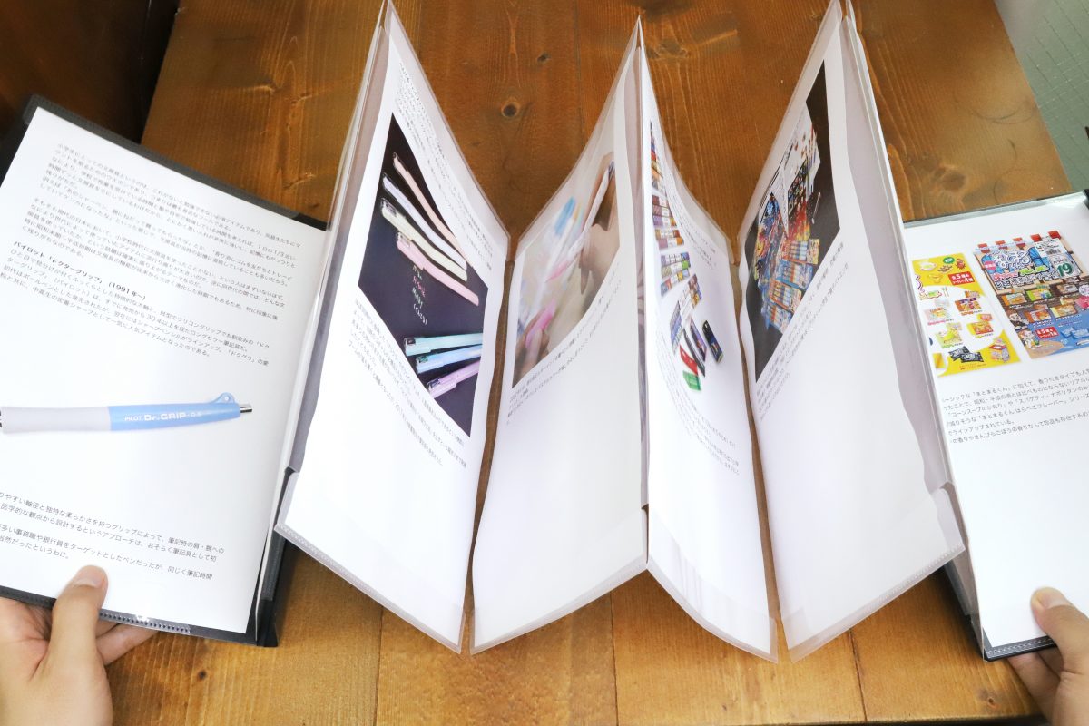 中央から畳むと、A4書類が4枚横並び(A3なら2枚)にできる。さらに、ページをめくると新たにまた4枚が見開きで出てくる、という構造だ。A3の大きな図面やチャートを連続して閲覧することもできて、もちろん綴じたままの書き込みも可能。建築や不動産、イベント運営など、「こういうのが欲しかった!」という業種の人もいるのではないだろうか。