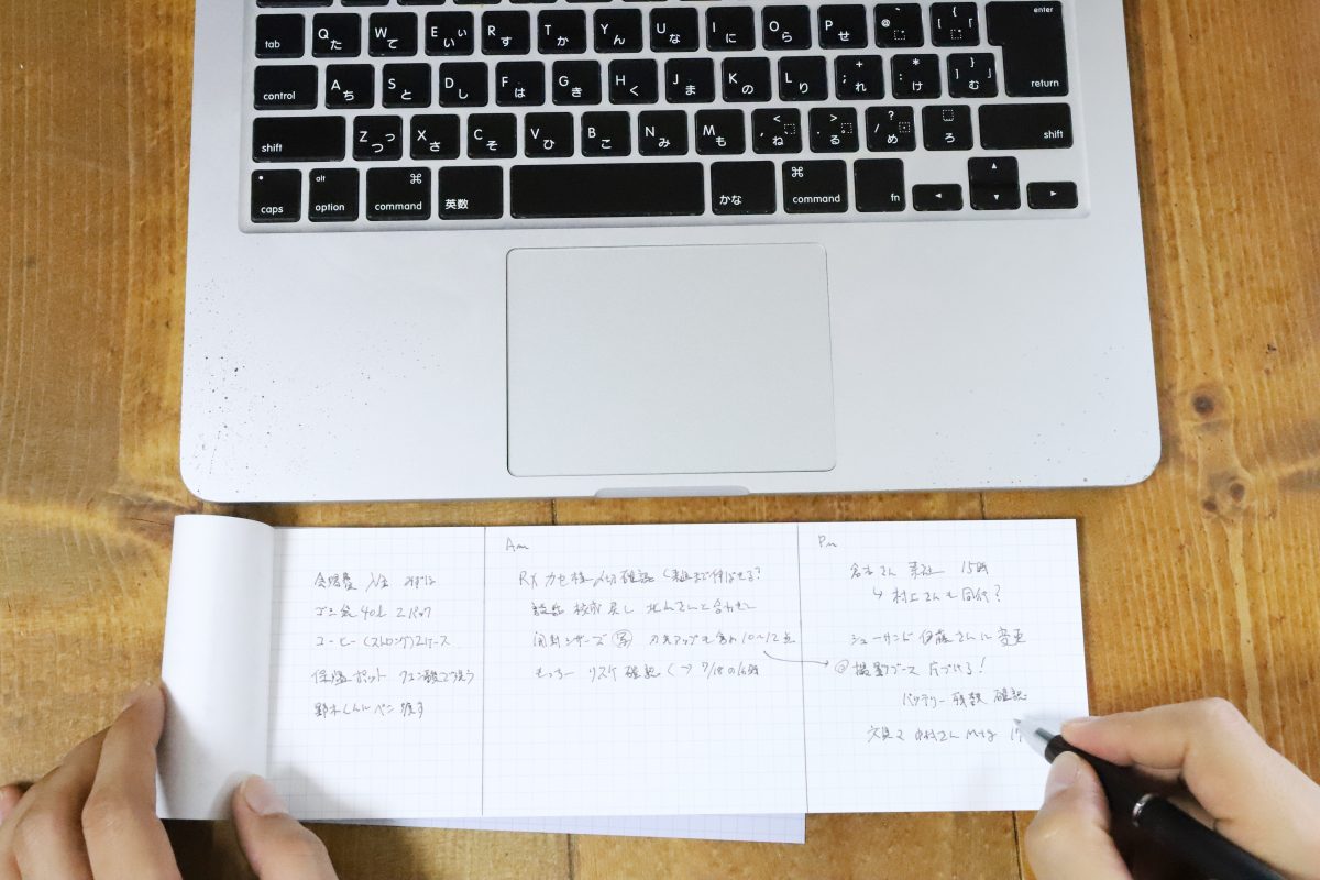 さらに「おっ、これいいじゃん!」と感じたのが、パッドの縦使いだ。ノートPCの隣に縦にして置くと、奥行きはやや出てしまうものの、ぜんぜん許容範囲。なにより利き手側に配置することで、手前に置くよりもかなり自然に書くことができるのである。それでいてスリムだから場所も取らないうえ、普通のデスクメモよりも書く面積がたっぷり取れる。つまり、縦使いで使ってみると、これがとても快適だったのだ。