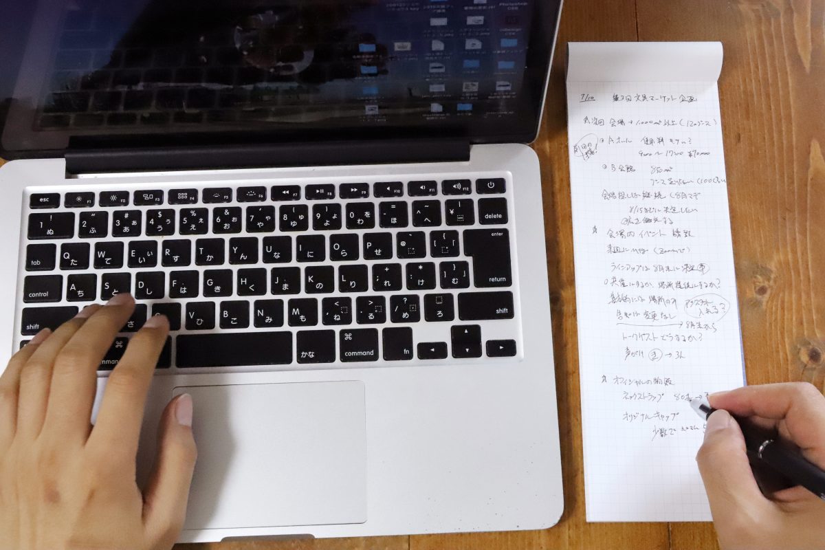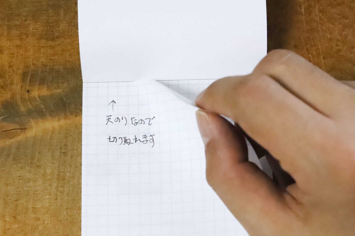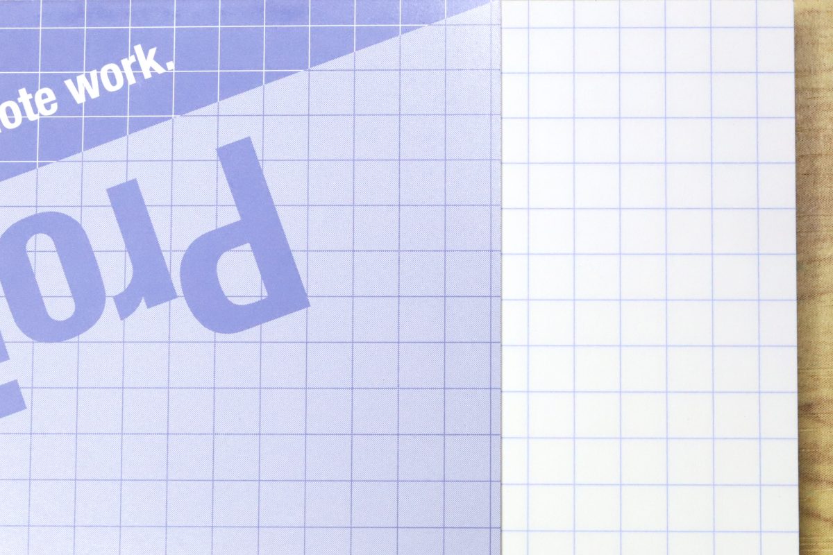 筆者の場合、1時間ほどのオンライン会議ではA6サイズのデスクメモを2~3枚は確実に使う。対して、「プロジェクトペーパーB5ハーフ」ならまず1枚で充分。いちいちめくる手間もないし、文言同士を矢印でつなぐなど広々と使えるのも便利だ。要件が終わればピリッと天のりから剥がして捨てられる、という気軽な使い方ができるのも、運用上のありがたいポイントである。