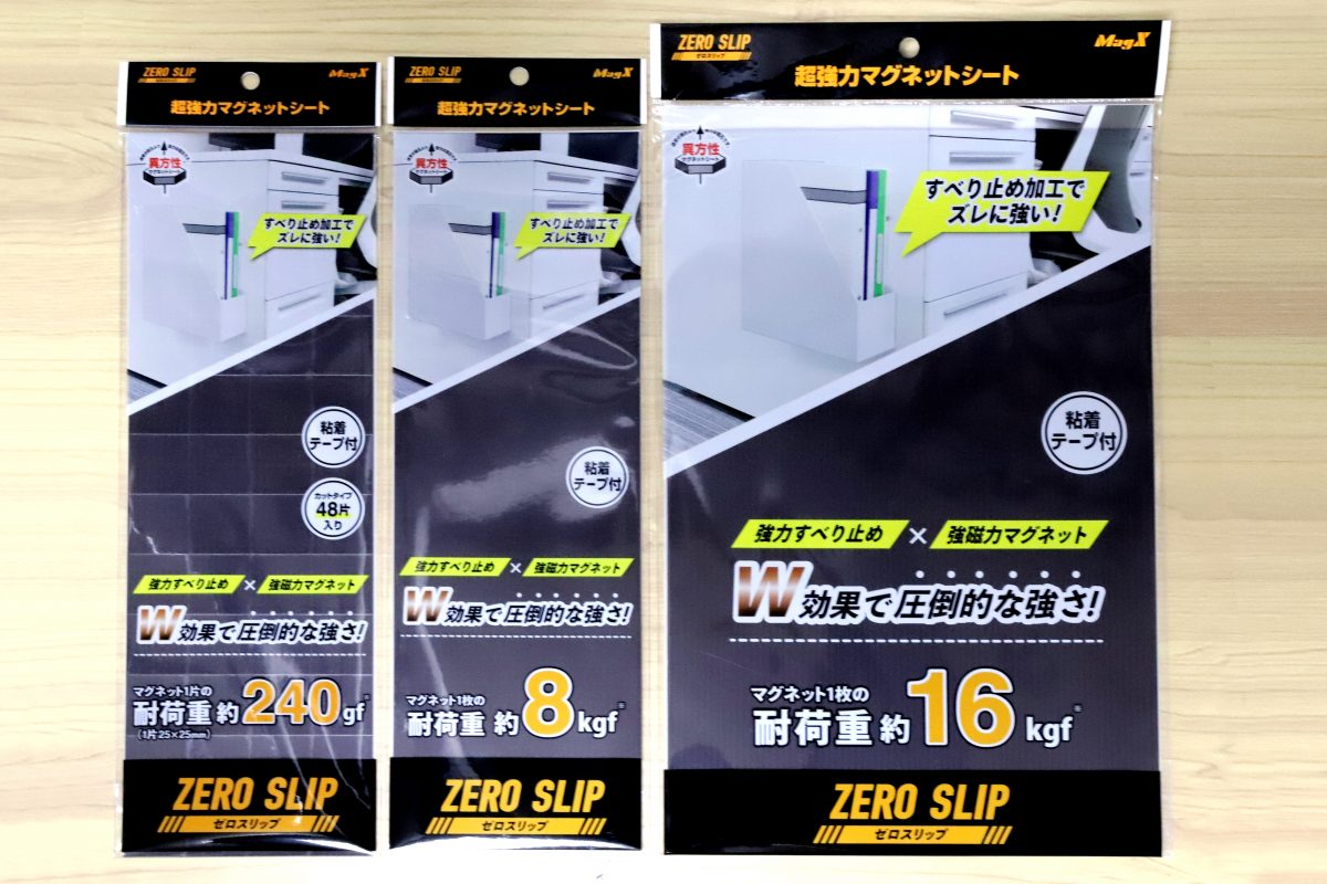 そんな不安をまったく感じることなく使えそうなのが、マグエックスの「超強力マグネットシート ゼロスリップ」シリーズである。さすが “超強力” と名乗るだけあって、なんと一般的なマグネットシートの約4倍というすさまじい耐荷重。これなら、なんでもバンバンと貼り付けたくなること請け合いなのだ。