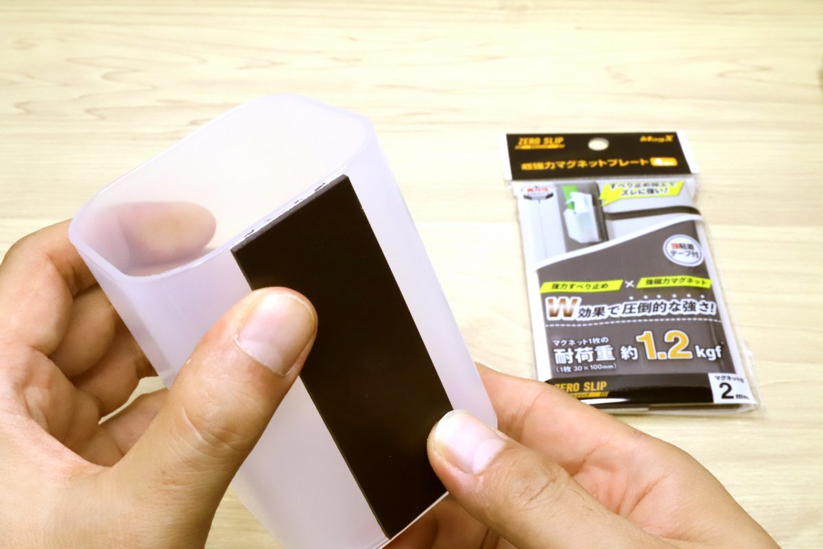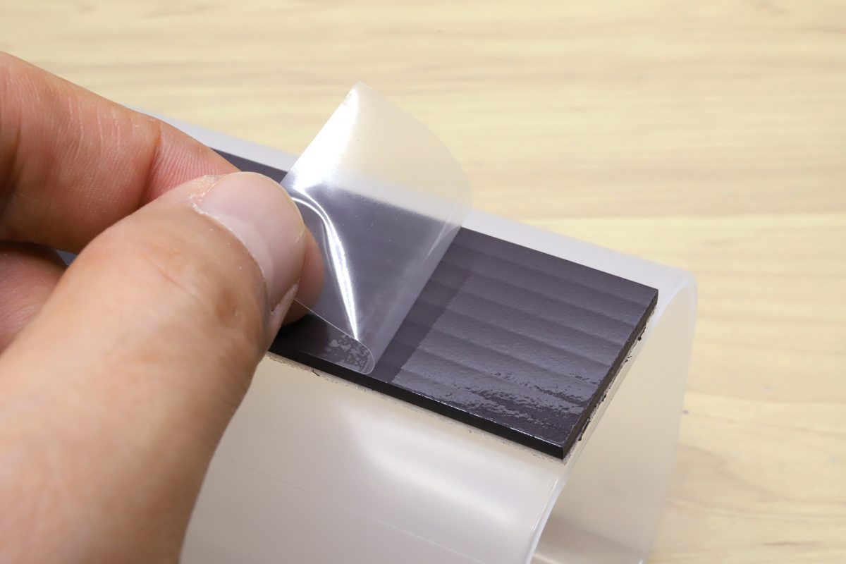 とはいえ、実際に試してみると、貼り付けてすぐでも「え、マジで!?」と思わず声を上げてしまうレベルの強力さで吸着していた。筆者は趣味の工作で、100均のマグネットテープを使うことが多いので、一般的にはどのぐらいのパワーで吸着するのかをだいたい掴んでいるつもりだが、同じサイズでも、ゼロスリップの磁力の強さは明らかにステージが違う。