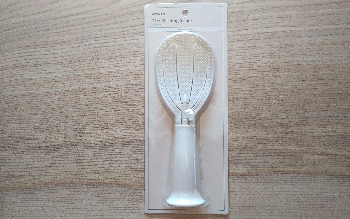 お米が大好きでほぼ毎日食べるのですが、炊飯器を買ったときに付いていた適当なしゃもじを使っていたためお米がくっつくのが悩みでした。毎日使うものだから、ちょっとこだわってみようと探していたときに見つけたのが3COINSの「米とぎしゃもじ」(330円/税込)。それではさっそくその機能性を見てみましょう。