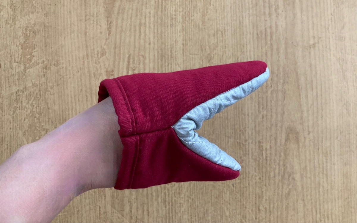 親指部分が大きめサイズのミトンだと、お皿の中に少し浸かってしまうことがありませんか? クイックミトンはお皿の端の薄い持ち手もしっかり掴めますし、先端がお皿の中に入らないので汚れずに済みそうです。