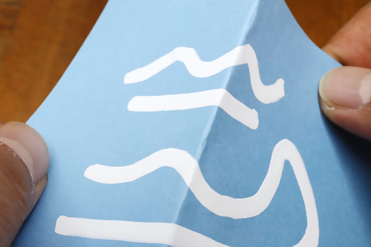 また、乾いてもある程度の柔軟さが維持されるようで、修正した部分を紙ごと折り曲げても割れたり砕けたりしにくい。これは既存の修正液と比べてかなり驚かされる部分だ。