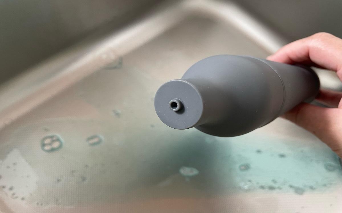 市販のボトルは洗剤が出てくる部分が汚れやすいのが気になっていましたが、こちらのボトルの先端部分は液だれを軽減する工夫がされています。液だれでボトルがベタベタしにくいのも嬉しいですね。