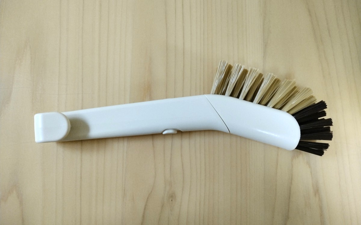 ブラシ部分は取り外すことができるので、汚くなってきたら取り替え可能なのも衛生的。使い終わった後は釣るしておけるフックが付いているのも便利です。ブラシの毛が硬い先端部分は、細かな部分の汚れを取るのにも使いやすく、排水口周りや三角コーナーなどの掃除にも重宝しそう。