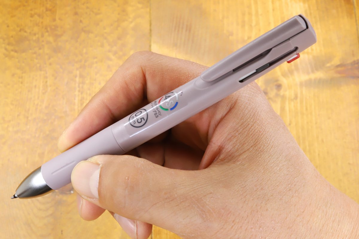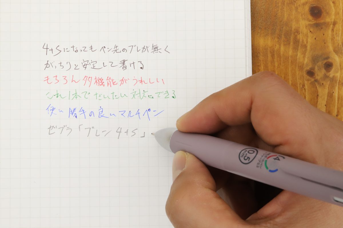 特に、ペン先を紙に当てたときの “逃げ” がないので、手帳などの小さい紙面でも狙った位置からピタッとズレなく書き始められるのはとても快適。この辺りは、3Cや2+Sから変わらず、「さすが多機能でもちゃんとブレン!」といったところだ。