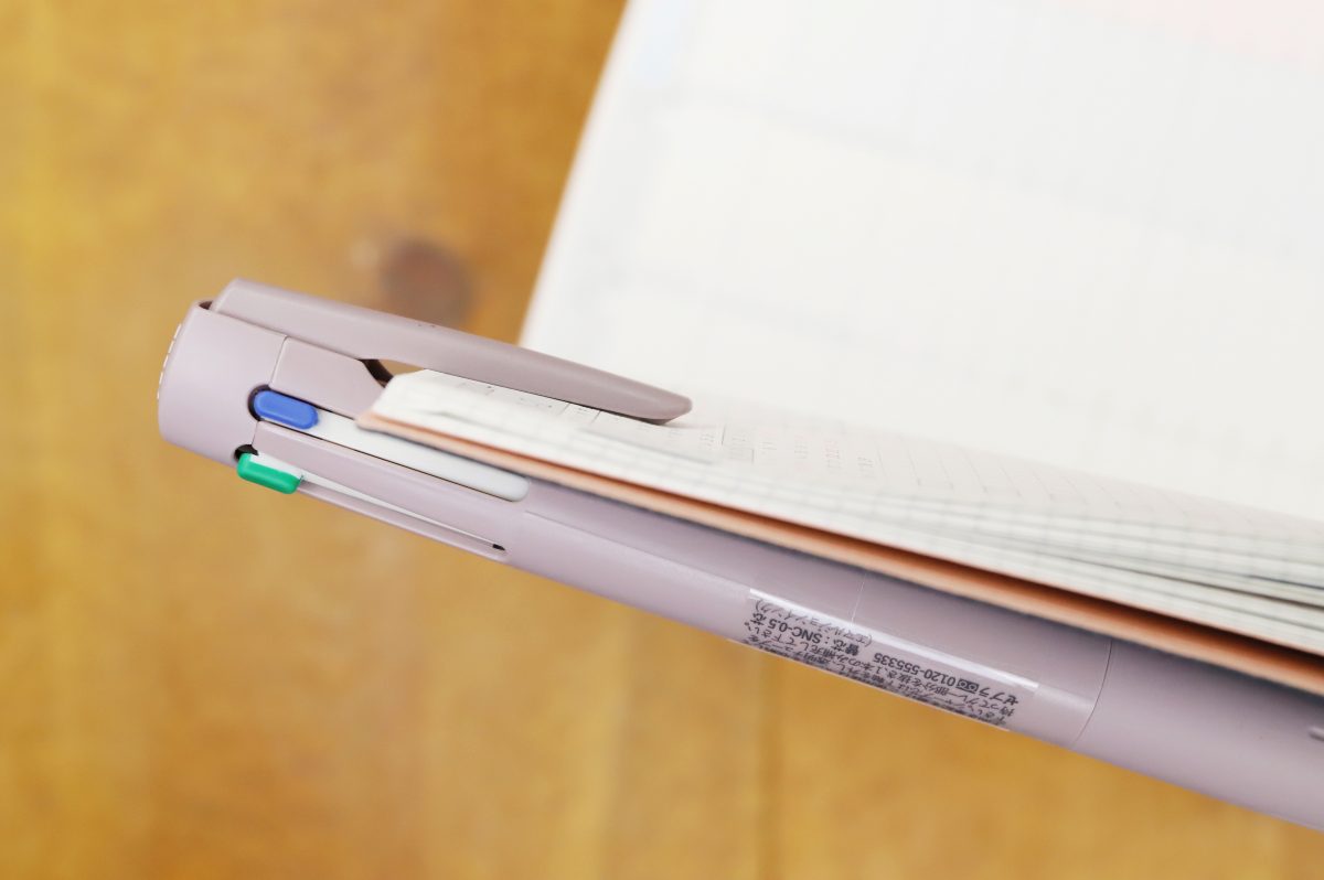 さらにもうひとつ、おまけ要素として嬉しかったのが、クリップが可動式のバインダークリップ仕様なところ。多色/多機能は手帳とセットにするケースが多いので、厚めの表紙でも挟んでおけるバインダークリップがあると地味に助かるのである。