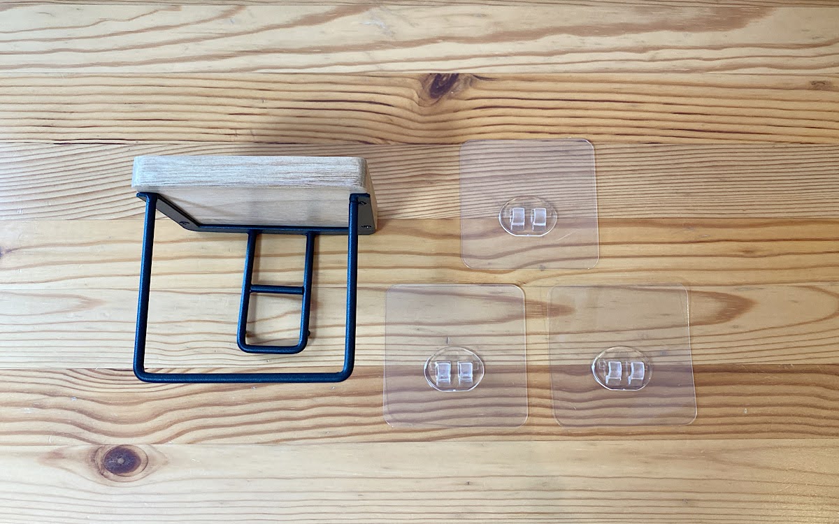 スマホの保護フィルムを貼るような要領で、貼りつけ面との間に空気が入らないようしっかりと貼りつけます。10分ほど待つと接着力が強くなるので、しばらく待ちましょう。後は吸着シートのフックに本体をカチッと取りつければ完成。工具を使うこともなく、簡単に設置することができました。