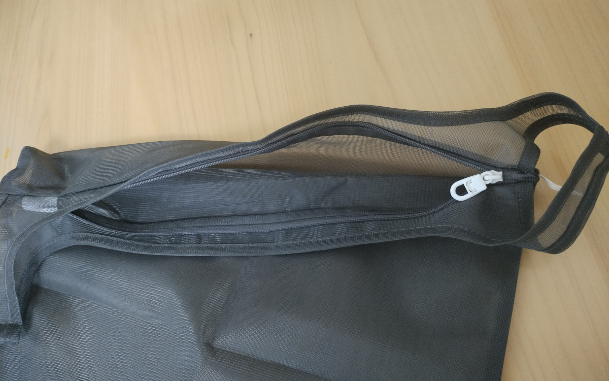 洗濯ネットの上部にはファスナーが付いているので、洗濯するときにはファスナーを閉めてそのまま洗濯機にポンっと入れるだけ。ファスナーの引き手も大きめでつまみやすくなっているのもGoodです。