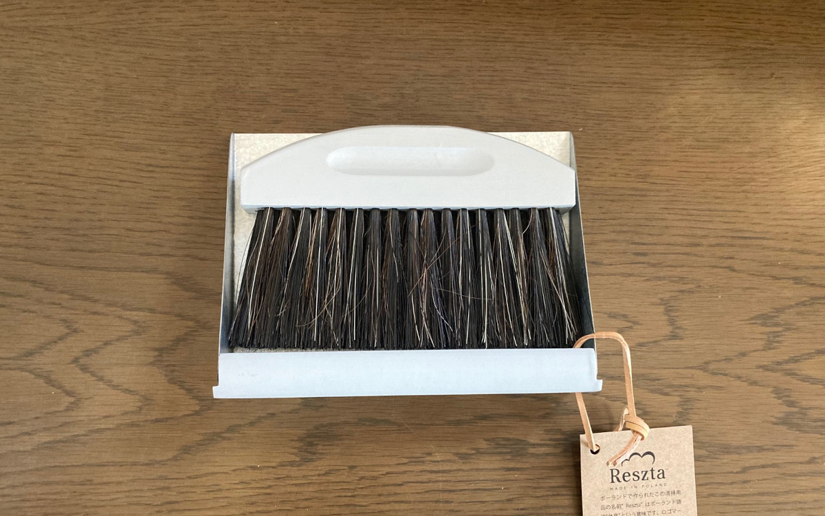 今回ご紹介する「Resztaレシュタ ポーランド製テーブルブラシセット」(2640円/税込)は、ディノスの通販サイトで見つけたもの。淡いグレーのシンプルなカラー使いが目を引きます。