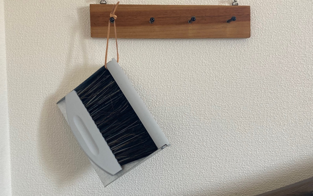 購入の決め手となったのはブラシの背面にあるマグネット。ダストパンにピタッとくっついてくれるので自立も可能です。使用しないときは机の脇によけておけば邪魔になりません。