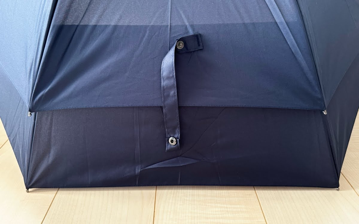 一見重そうに思えるサイズ感ですが、親骨にはグラスファイバーを採用しているので軽量。丈夫なので風が強い日でも安心して使うことができます。ワンタッチ式で片手でサッと開けられるところも嬉しいですね。