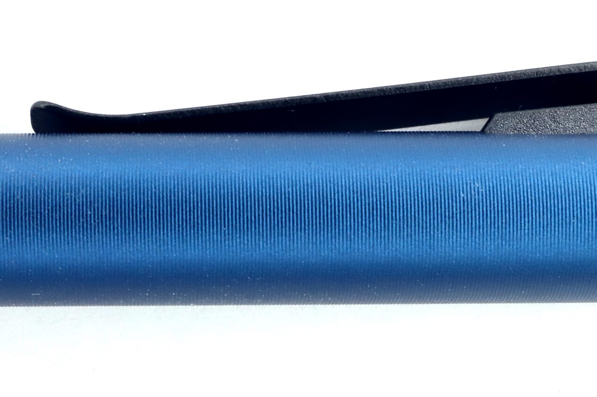 加えて、軸表面には全体に微細な溝の切削とブラスト加工が施されており、これが程よく光を拡散させることでテカテカ感を打ち消し、ドッシリとした重厚感の演出になっているようだ。