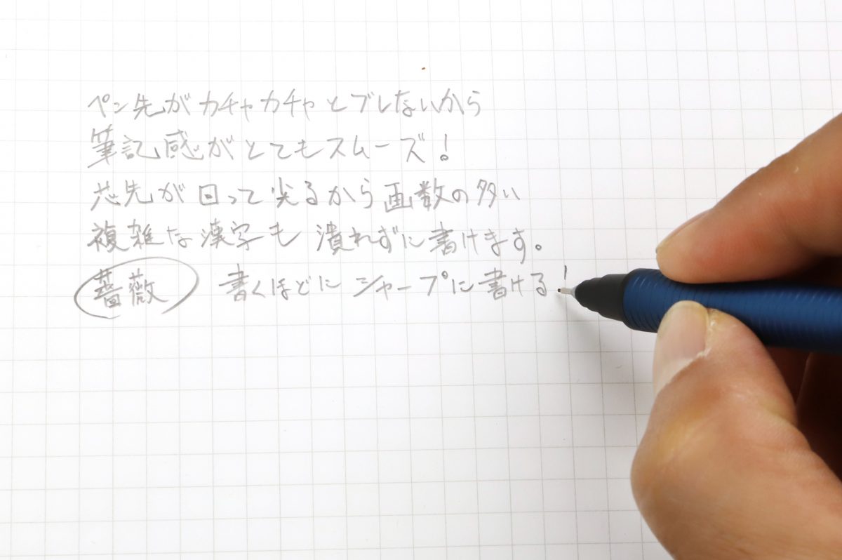 バランス良く、握りやすく、筆記感も文句なし。かつ、クルトガならではの芯先の鋭さのおかげで、整った文字が書きやすいというメリットも確実に享受できるんだから、とても優秀な筆記具であることは間違いない。