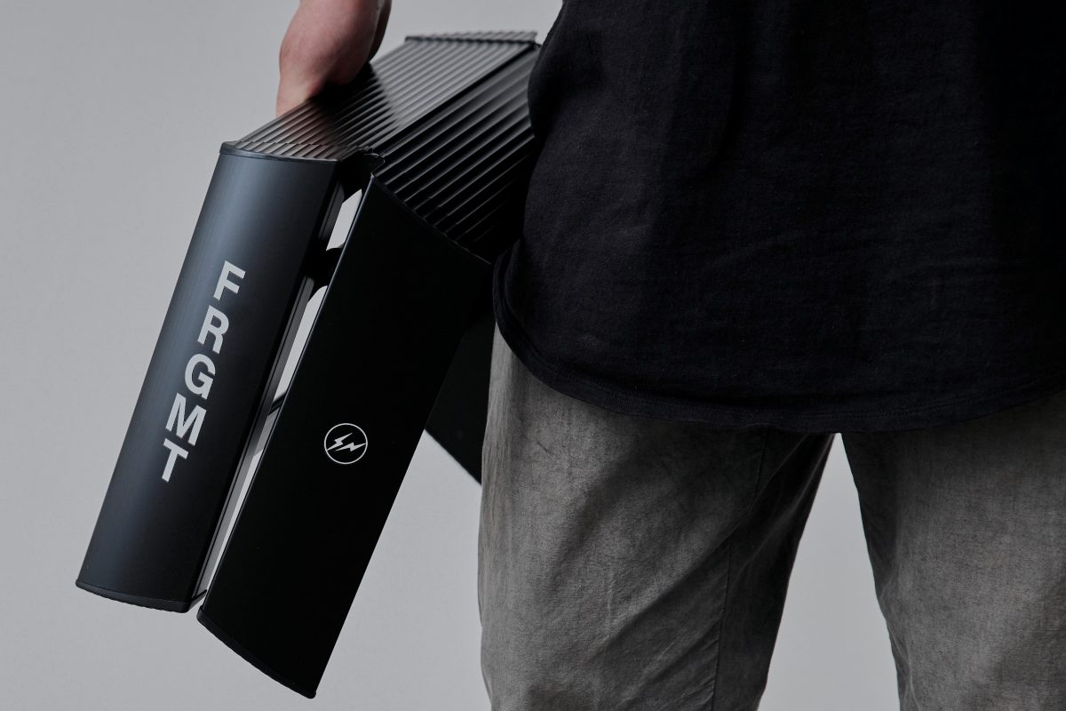 第三弾コラボレーションでは、ルカーノの特徴的なフォルムと機能はそのままに、マットブラックのベースにホワイトのロゴをあしらったモノトーンで、フラグメントらしい都会的で洗練されたデザイン。