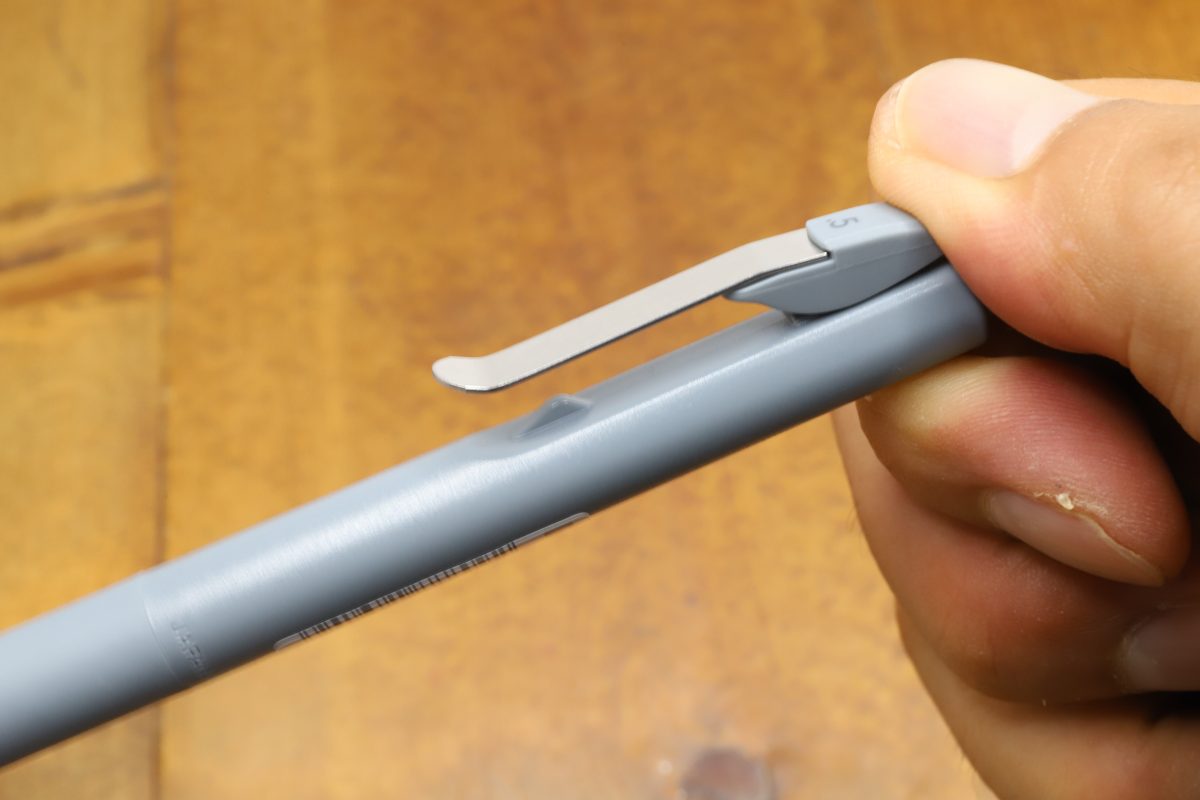 そんな中でもクリップの金属化は、誰からも支持される変更点と言えるだろう。というのも、従来型「ブレン」の樹脂クリップはかなり板圧が薄く、手帳カバーなどに挟むだけで簡単に折れてしまうトラブルが多発していた。一部では「使うと折れるクリップ」なんて言われていたぐらいだ。