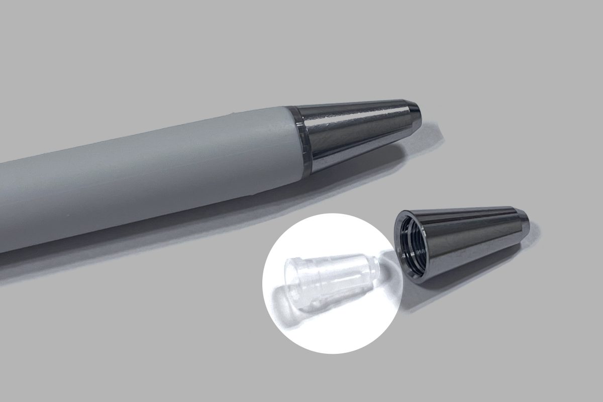「ブレン」シリーズのメイン機能ともいえる“筆記時のブレ抑制”は従来通り。口金の出口でリフィルを固定するダイレクトタッチや、押し込まれたノックノブが揺れ動かない機構などのブレンシステムはこれまで通り働いてくれているので、高い筆記時安定性は維持されている。