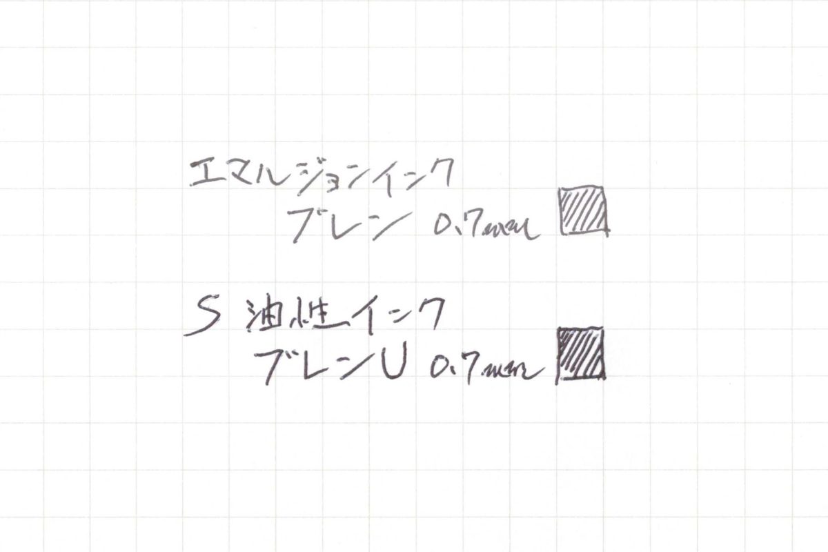 最も大きな差分といえるインクの変更だが、やはりエマルジョンインクからS油性インクになったことで、なめらかさはかなりアップしたように感じられる。従来のエマルジョンインクも決してタッチが重かったわけではないが、しかしやはり低粘度油性のS油性インクの方が確実に軽い。