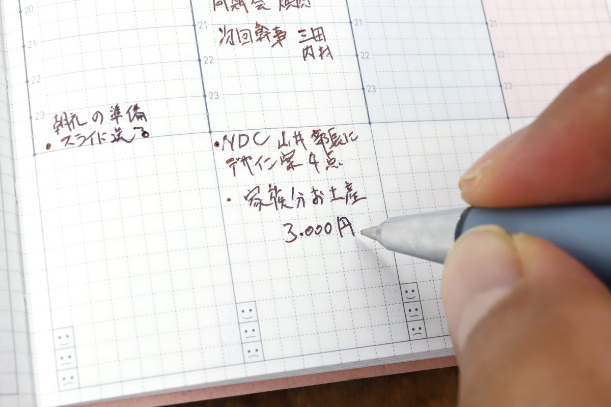 そしてこの軽さが活きるのが、ハンドメモや手帳を手持ちしての筆記だ。