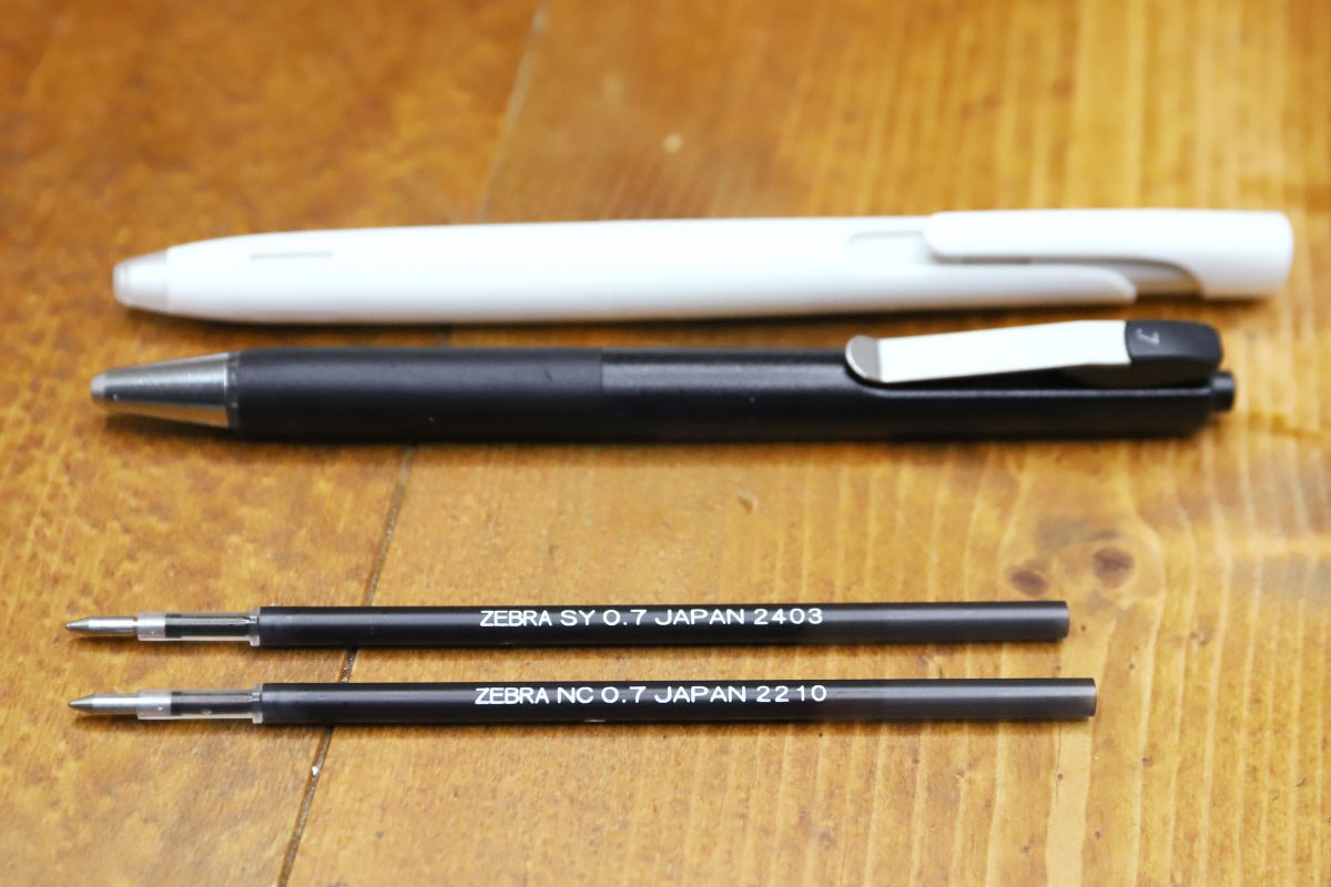 ところで、この稿の始めの方で「従来型の「ブレン」ファンからはデザイン面で賛否が分かれそう」と書いたが、ご安心を。従来型「ブレン」用エマルジョンインクのNCリフィルと、S油性のSYリフィルはサイズ・径とも共通で、入れ替えが可能なのだ。