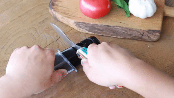 包丁と同じ刃付けをしているので、包丁用のシャープナーを使えば手軽に刃研ぎができます。